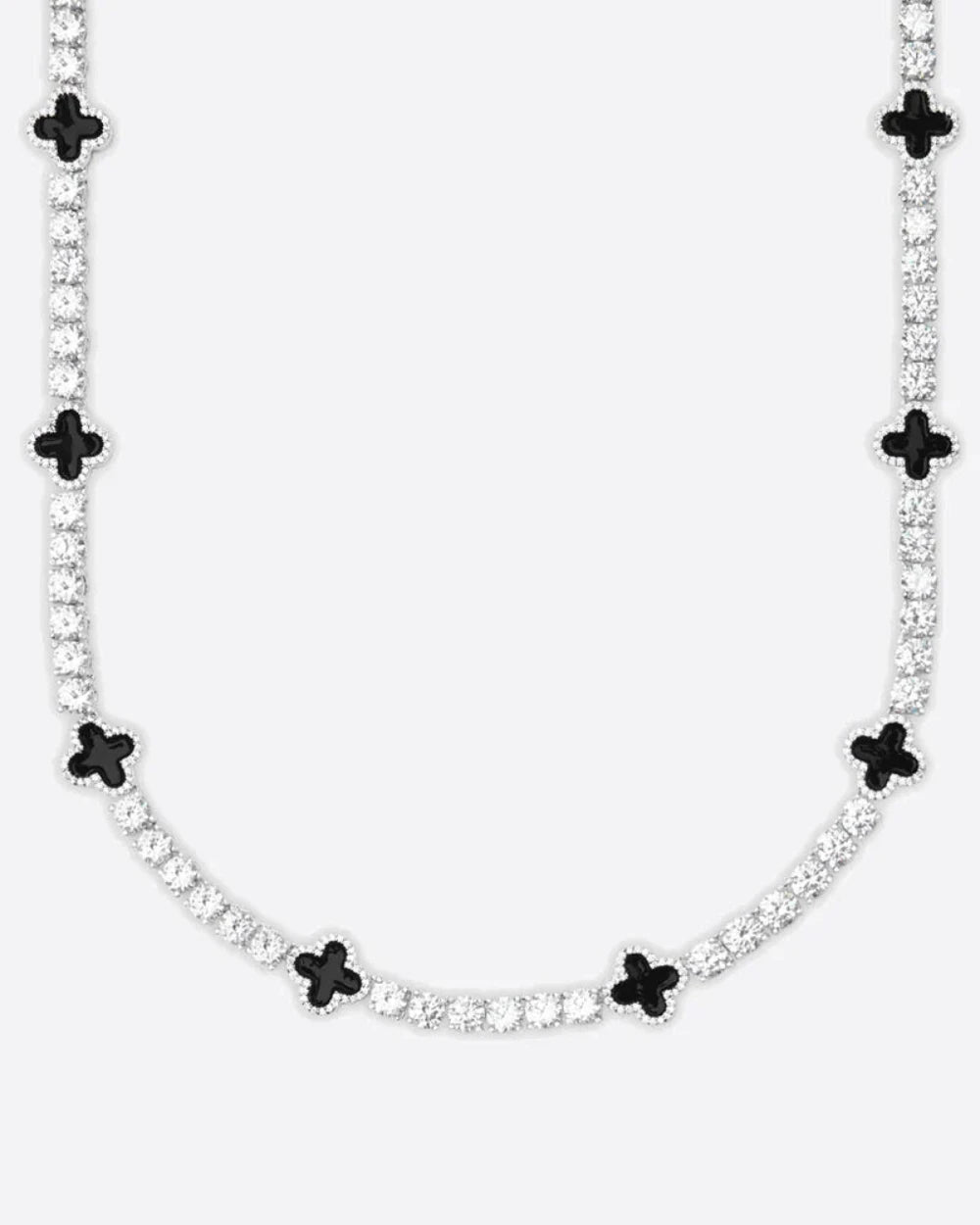 - Design: A modern take on the classic tennis bracelet, with intricate black clover details for a touch of uniqueness and charm.