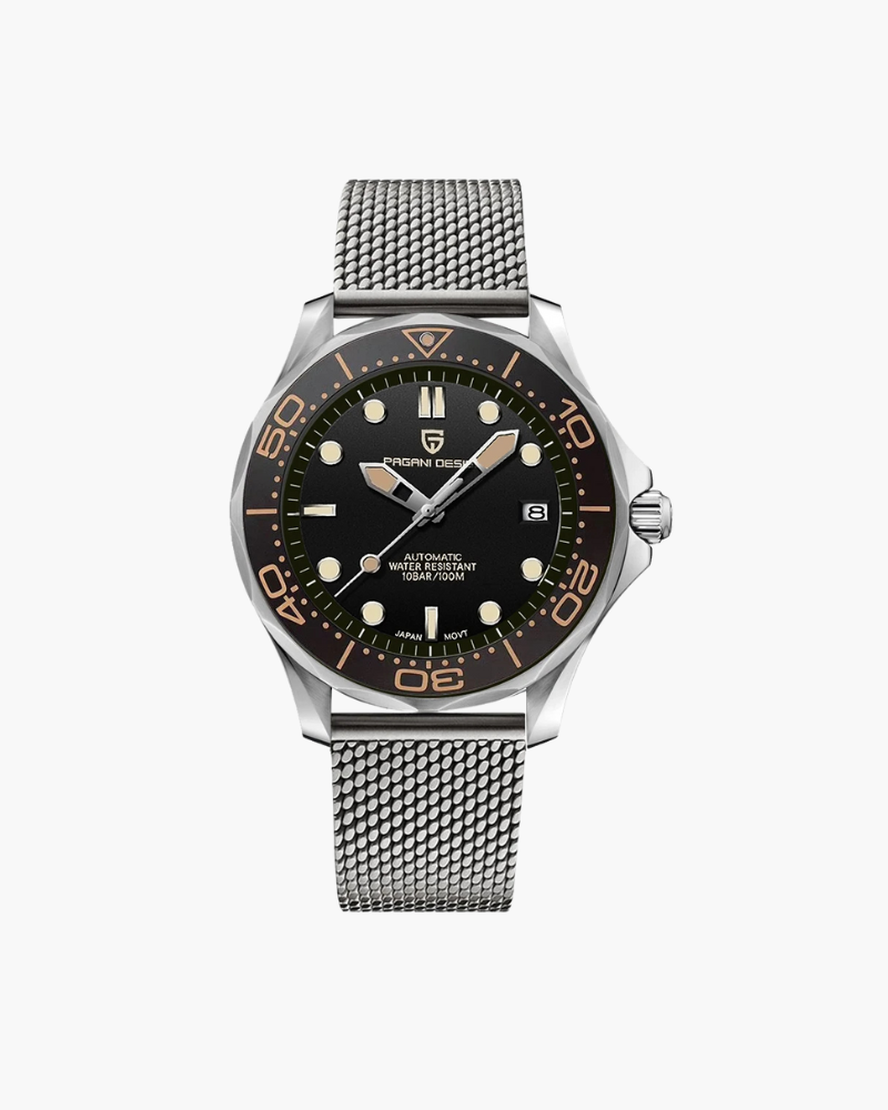 120-click unidirectional ceramic bezel — durable, precise, and elegant.